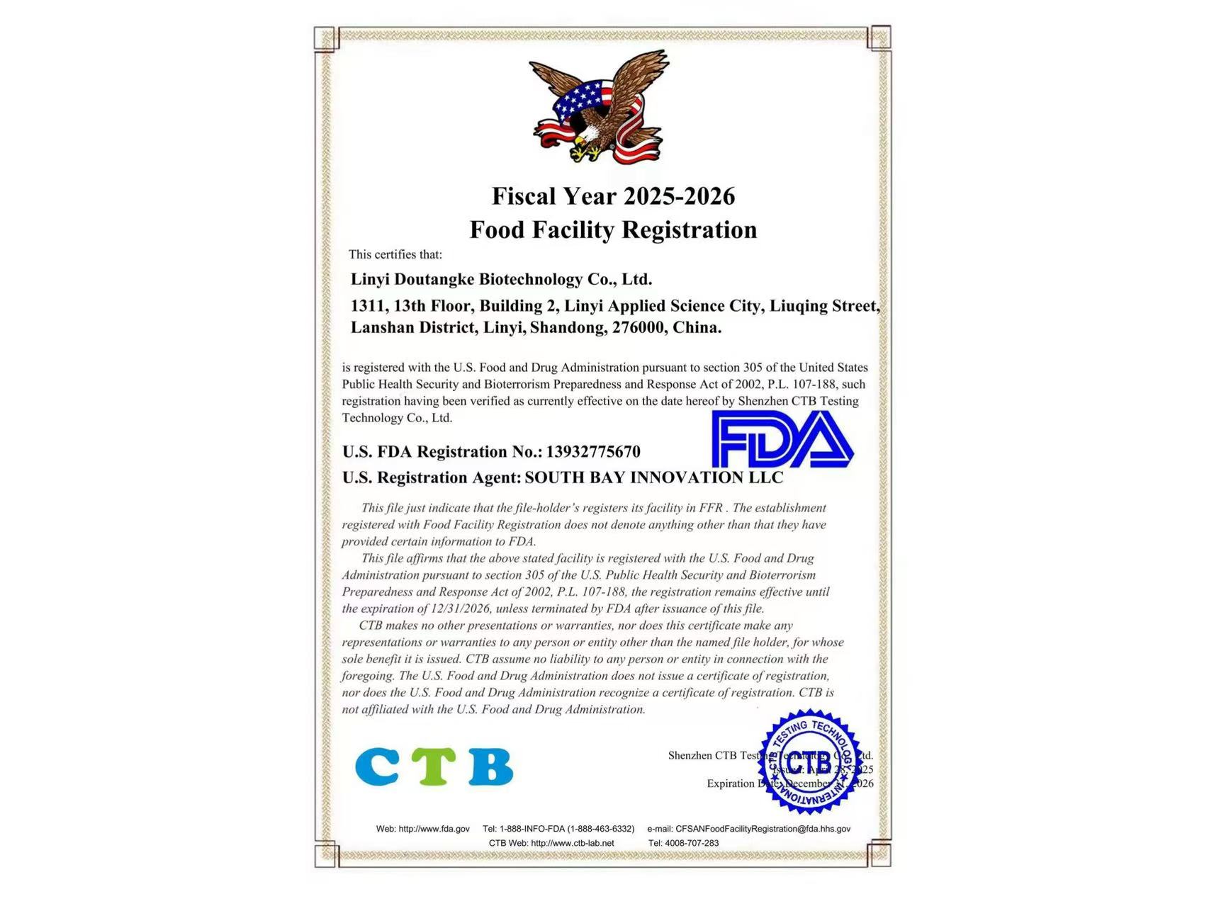 美国FDA食品安全认证